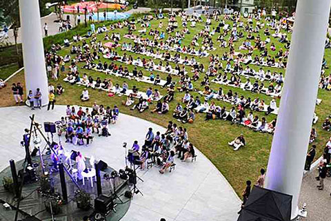都会の中に広がるオーバル広場のオープンエアな空間の中で、芸術の秋をお楽しみください。
